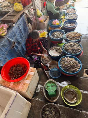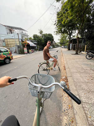 Matin: petit dej à l’hôtel, balade dans la vieille ville, stop dans un café, retour à vélo avec un stop chez Madam Khanh manger un Banh Mi